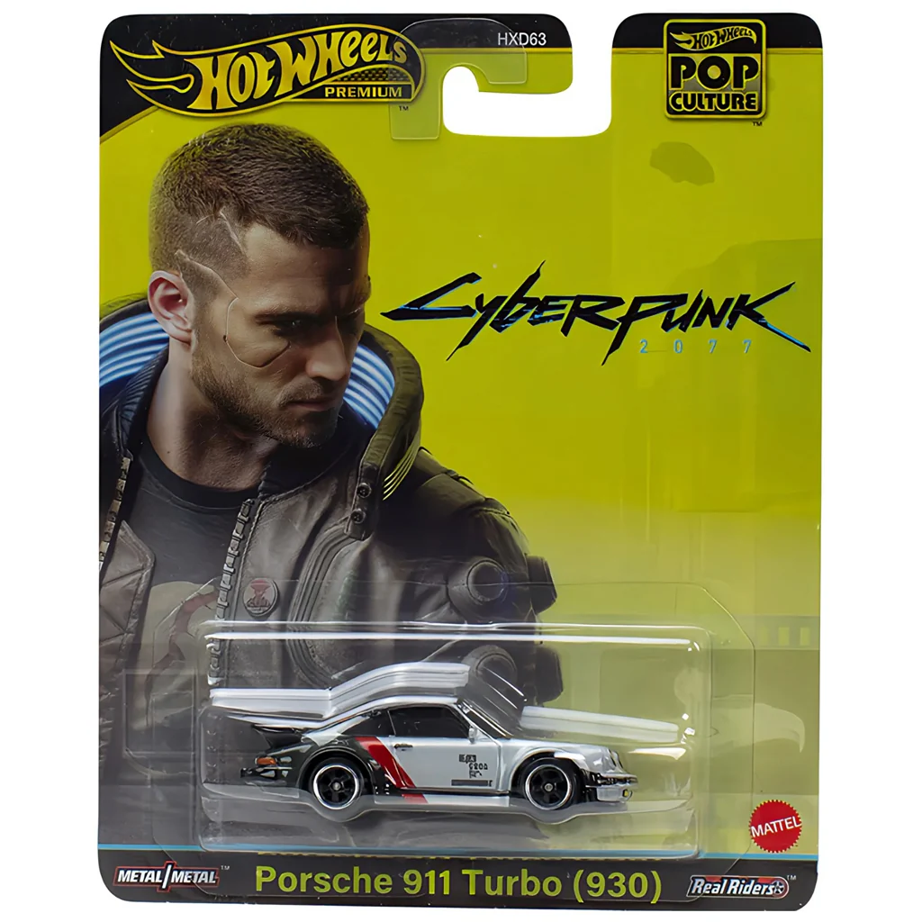 Miniatura Hot Wheels Pop Culture del Porsche inspirado en el universo Cyberpunk a escala 1:64. Modelo nuevo en blister original, ideal para coleccionistas y fans de la cultura futurista.
