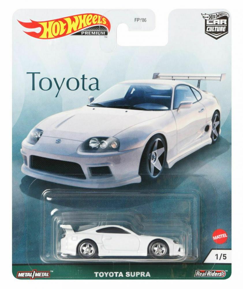 Hot Wheels Premium Toyota Supra a escala 1:64, con mayor nivel de detalle y acabados de alta calidad. Modelo nuevo en blister original.